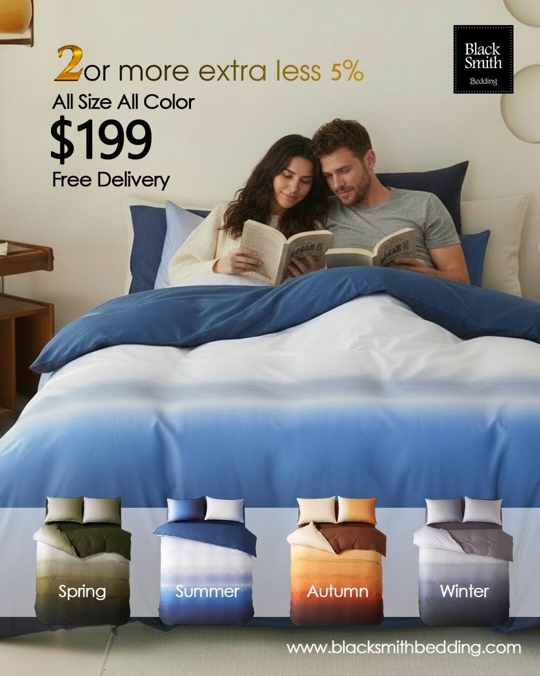 Black Smith Bedding之純棉床品套裝,採用高支高密紗綫織做,針數高達3千多針,斜紋機織,持久耐用,柔軟親膚,透氣度高,多年來深得客人一致好評,尤以3124針埃及棉最深得市場肯定。而永恆純棉系列,顏色獨特,多種顏色可供選擇,適合愛好顏色主義之人士。