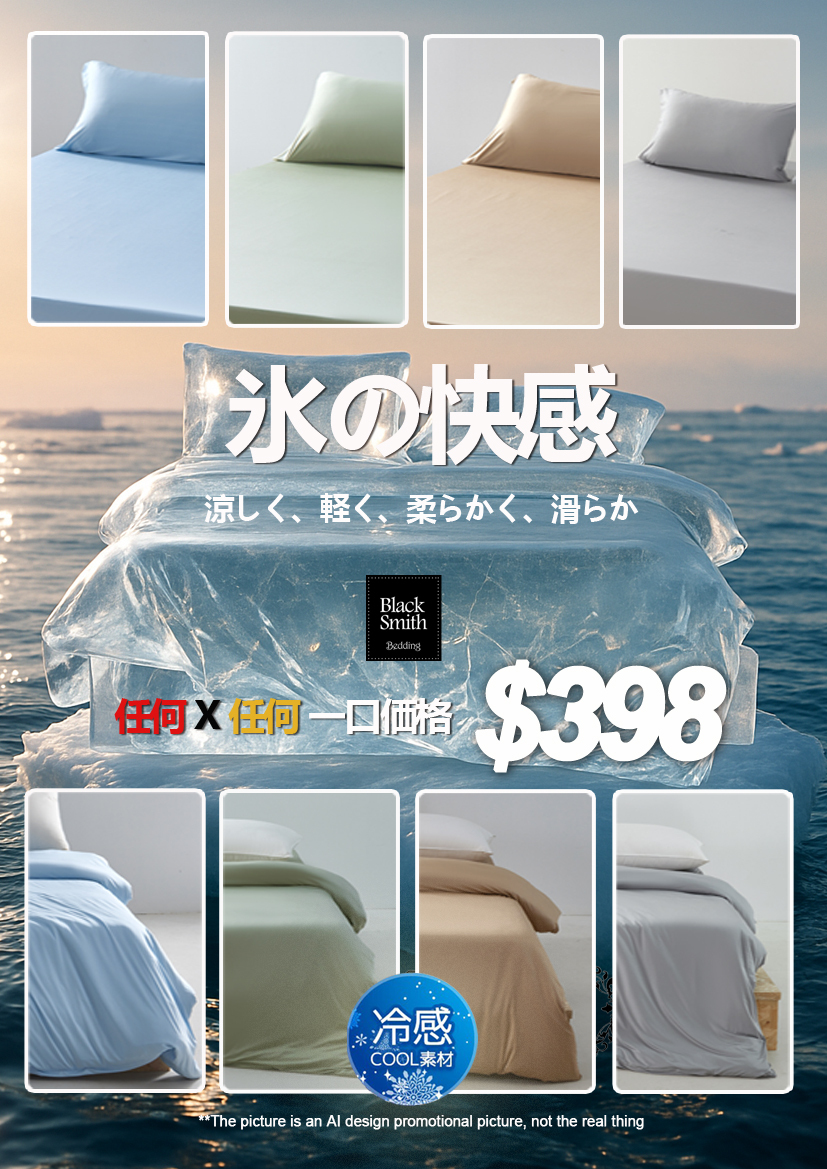 貴為王牌,當然有他獨特之處。眾所皆知,真絲布料順滑柔軟舒適,高貴大方,但缺點是價格太高,容易勾紗,不適合大眾家庭使用。有見及此,Black Smith於多年前推出了能比真絲過之而無不及的~冰絲布料床品套装!更成為本公司長期銷量冠軍之產品,在香港巿場上隱佔一席位。