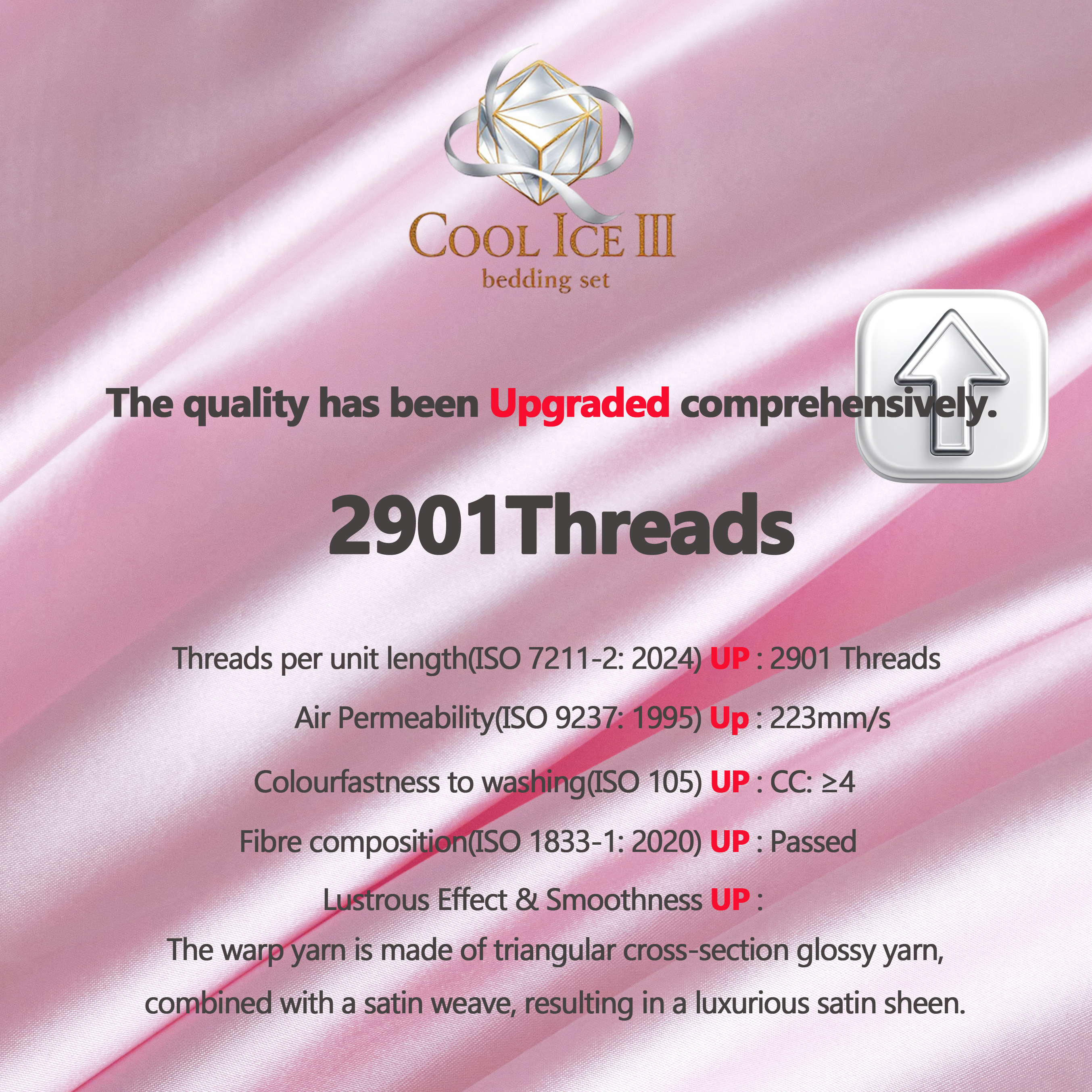 The fabric has been upgraded to a *high-thread-count 2901 stitches per 10 square inches*.