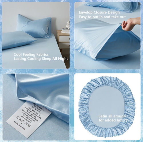• Spandex冰感面料自身帶有極涼功能,加上能迅速散熱,使面料長期處於冷感狀態,而且能一路維持,助你整晚享受涼快睡眠